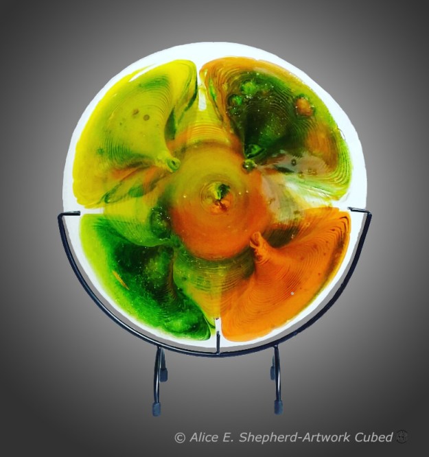 Decorative Works We Are Stardust 10″d We Are Stardust Detail Vortex 16″d “Vortex” detail “Terra Firma” Front , 10″d “Terra Firma” Back, 10″d Autumn Glow #2, 10″ d Untitled: 14″ d